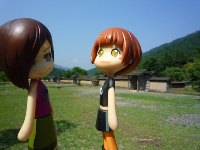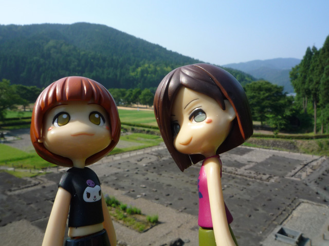 「…ということは古くから続く名家とかあるのかな?」 「あのあたりとかこのあたりの大きい家とか、あ、ホラあっちの家とか!!」 遠くまで見渡せる天守からの眺めにやいのやいのとかしましく でも、近くもちゃんと見なくて良いの? 「そういえば、なんかあの屋根瓦の色、一寸気になる???」