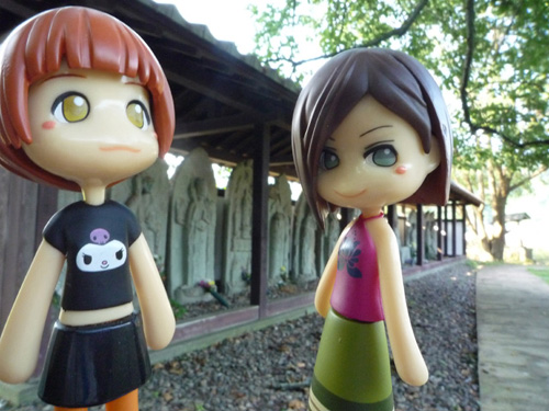 一条谷の入り口、駅の裏手にあるのは西山光照寺跡 お寺はないけどココにもたくさんの石仏が置かれてるんだ 「ちなみに山の上には古墳群があるんだって」 「いったいどこまで遺跡が広がってるんだか…」