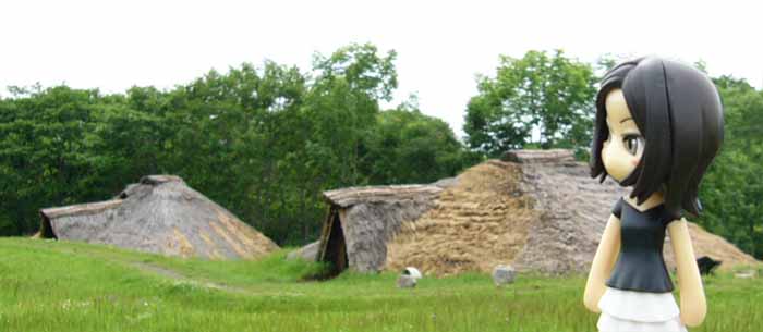 「復元遺跡っ!!復元された竪穴住居はどこだ??」 「こっちこっち。資料館の裏から20分…えー意外と遠い〜」 「面倒ならマキはここで待っててよ。私一人でいってくるから」 「あ、まってー」