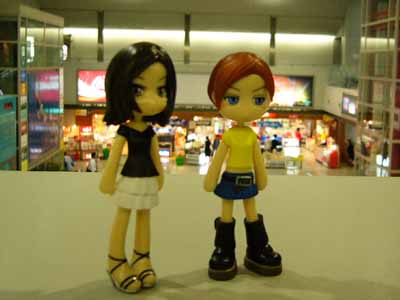 「帰りの飛行機まで1時間半もあるの。ご飯食べたばかりだから喫茶店に入る気もしないね」 お土産物色〜