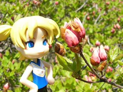 「確かにいい眺めだけど…昨日から海ばっか見てて飽きないのかな?」 いい眺めはどこから見てもいい眺め 同じ場所ならともかく違うトコから見る風景は 同じようでも全然楽しみが違うんです 「そうそう、恵山っていったらやっぱつつじだよね。 でも、来るの一寸早かったかな??」