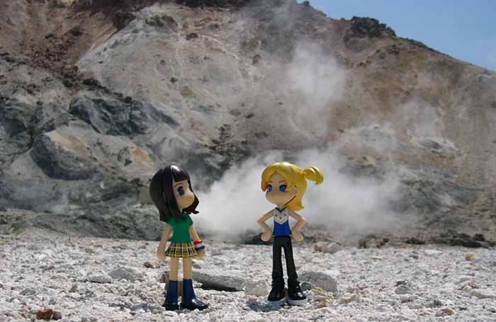 「すごーい。アレって噴煙かな?水蒸気かな」 「もう一寸近づけるんじゃない??ほら、もう少し前へ前へ」