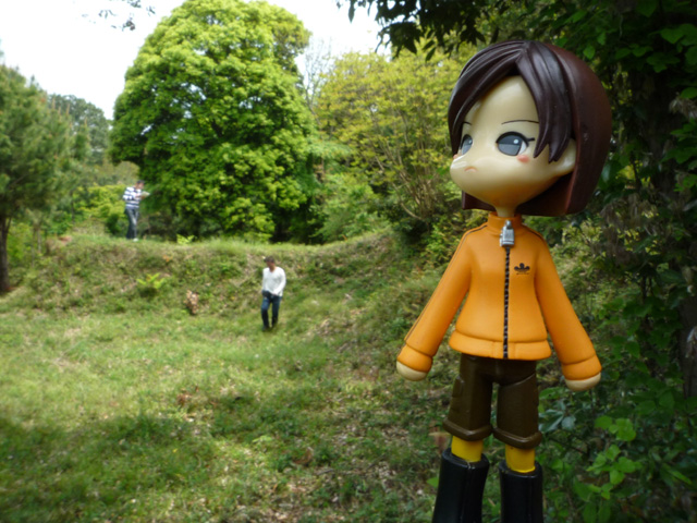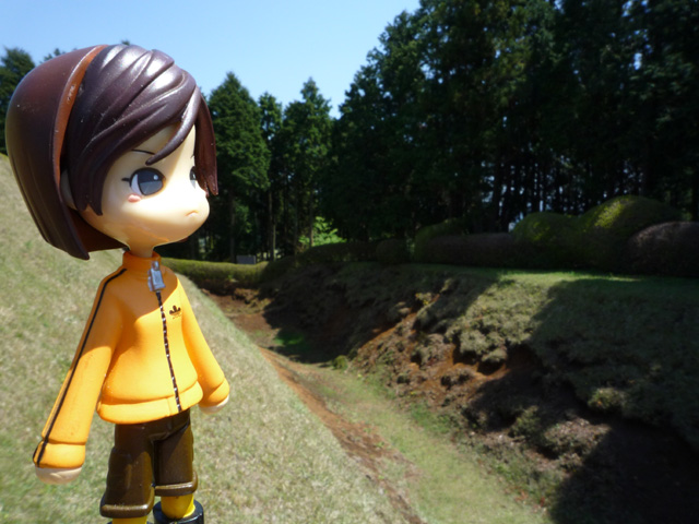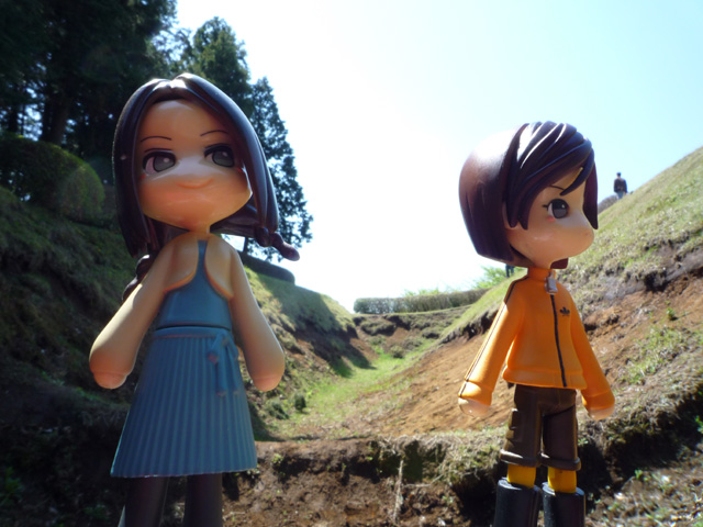 芝生がはげていたり畝が崩れているところがあるのは みんなが上ったり、滑ったりしてるからなんだ 「史跡破壊もいいところだよ」 「デモ登るんでしょ?」 「だってこんな形状なんだからしょうがないじゃんっ」 しょうがなくないって