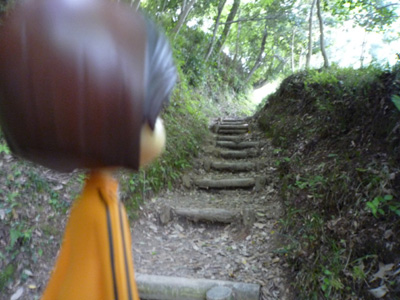 「きっとこの辺にも何か建物があ…あれ?」 曲輪を目で追うとその先に 上のほうへと登る階段が