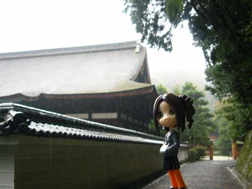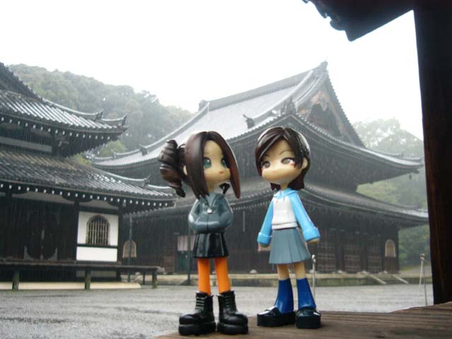 「…」 「…」 「雨だ…」 「雨だねぇ…」 さて、2005年も夏が過ぎ去り秋がやって来たよ。 秋とえば恒例行事の京都奈良!! そんなこんなでレイナとさっちん京都についたはいいけれど 泣きたくなるような土砂降りに唖然としちゃった。とりあえず呆ーっとしててもしょうがないのでとりあえず出発です。 ピンキーストーリー 〜・おでかけ おでかけ・〜 京都奈良編2005・・・その壱 pinkyってなんじゃ食物か?…って人は こちら そんなわけでJRに乗って泉涌寺にやってきました 「町から一寸上がってきただけなのにもう山ン中だねぇ」 「観光バスが追い越してったけど、混んでたら嫌だなあ…」 少しでも時間差を作るためにノロノロ歩いて大門に向かいます。