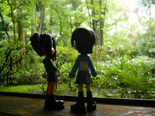 「そういやあ、写経ってやったことないねぇ。どうよ?」 なんでもかんでもやりたがるんじゃありません さて、ここからガーっと山を下って東福寺に向かいます。 でも、グチョグチョした狭い通りを抜けてるうちに方向を見失ってしまいました。 すったもんだでなんとか霊雲院に到着。 遺愛石と九山八海の庭を見学 して一休み