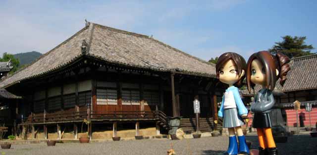 ピンキーストーリー pinkyってなんじゃ食物か?…って人は こちら 〜・おでかけ おでかけ・〜 京都奈良編・・・その参 そんなこんなで最終日だよ。 昨日に続いて今日もとってもいい天気。 午後には奈良入りしたいけど、奈良市内近郊を回るのは なんか負けた気がするのでまたもや南飛鳥方面を攻めることにしちゃった。 「大麻寺だってさ。ね、なんか凄いものが見れそうな名前だよね」 「大麻じゃなくって當麻なんだけど…」 お寺の名前は當麻寺だけど、 駅やガイドブックだと当麻寺になってるね。 とりあえずそんなことを喋ってるうちに仁王門が見えてきました。「おかしいなぁ…一寸早く来すぎちゃったかな??」 金堂の扉が開いてないので一寸不満なさっちん