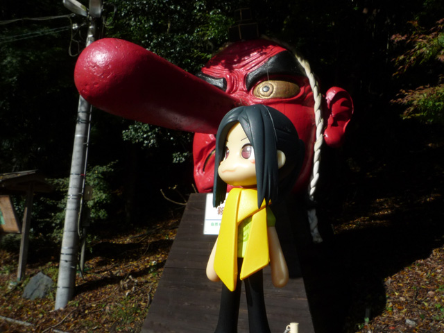 駅の前には大きな天狗がお出迎え