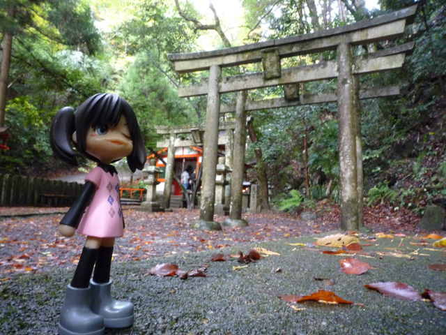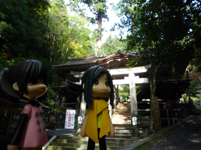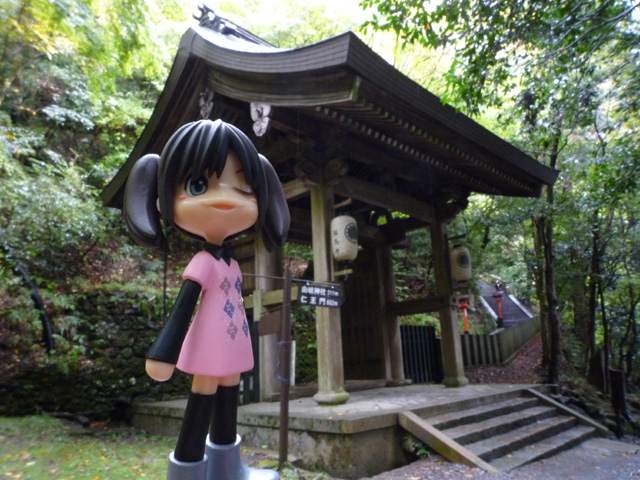 ここは鞍馬寺の鎮守、由岐神社の拝殿 拝殿なのに中を参道の階段が貫いてるのは結構珍しいみたいだよ へんなものを見るとちょっとやる気が出てくるよね なんだかもう上まですぐつく気になっちゃうんだ 勅使門まであがってきたし、あともう一息