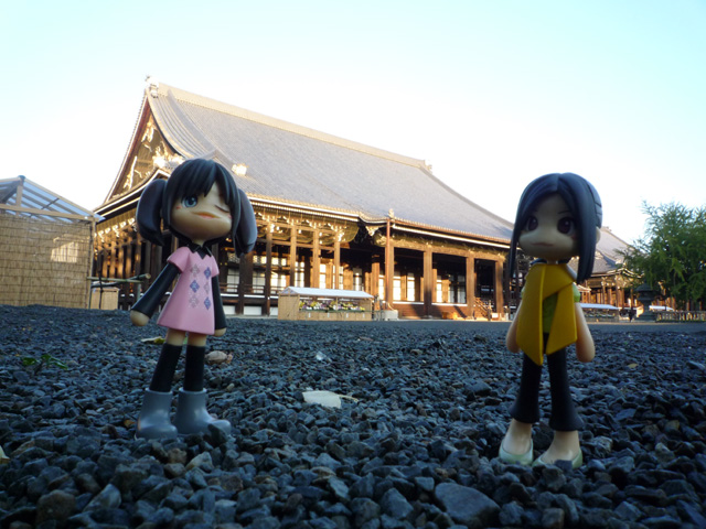 はてさて昨夜はとっても疲れたので とにかく今日は寝たおそうって思ってたのに 体がつかれきってて早く目が覚めちゃうんだこの始末!!さすがに旅先での二度寝はもったいない ってな訳でちょっと早すぎるけど出かけることにしたんだよ ピンキーストーリー 〜おでかけ・おでかけ京都奈良2〜 普通の旅行記はこっち とはいえこんな時間から中に入れてくれるところはかなりまれ でも西本願寺はかなり早くからは入れるんだ まだ六時ぐらいだから周りに全然誰もいないよ