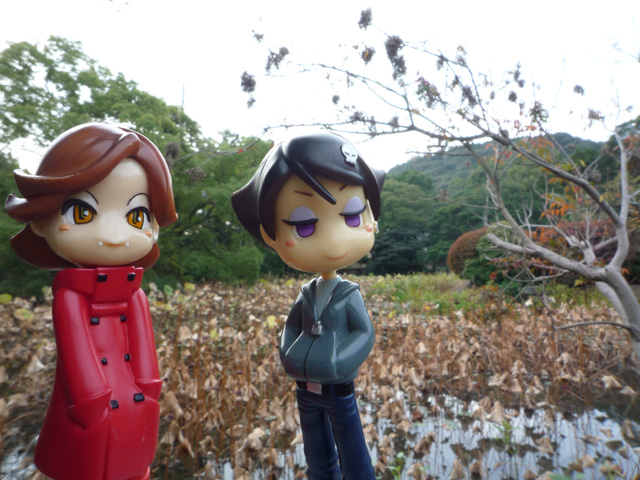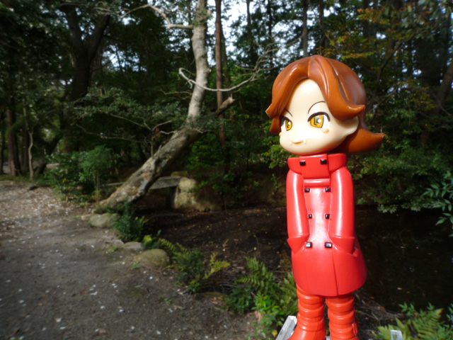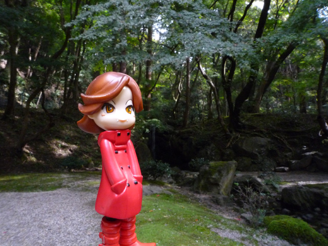 この辺は昼なお暗い 向こうに石橋が見えるからまだお庭の中だね