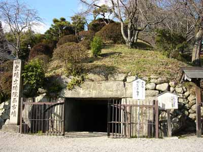 そしてふと目の前が開けたかと思ったら 目的地御破裂山山頂に到着です 「到着ー。って、山頂丸々お墓なんだコレ」 「ううーん、でも、藤原鎌足って違うとこに墓があったような気が…」