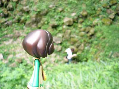 石垣の残骸を抜けると綺麗な草地が広がり 吹き抜ける風がなんだかとっても気持ち良い 「だけどここからじゃあ周りがよく見えないね 上のほうに上がれば小田原城とか見えるかな?!」