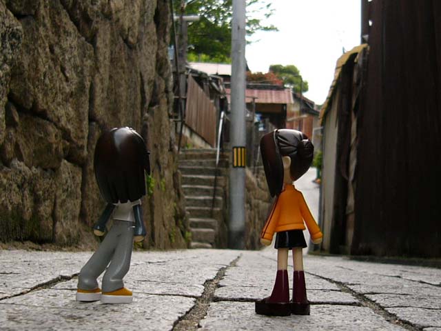 そんなわけで古寺めぐりコースに沿ってグニグニ ほそっこい道を突き進む二人 「ねえねえ、国道指定されてる小道だか階段があるのって尾道だったっけ??」 「しらんしらん」