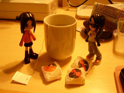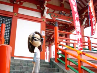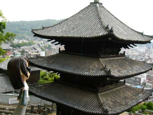 そんなここは西国寺。朱塗りの金堂と三重塔がとっても素敵なのですよ。 「金堂の隣に御茶屋があるね。一寸一休みしようか」 「ううん。私はお茶よりもオチャケが良いな」