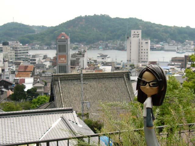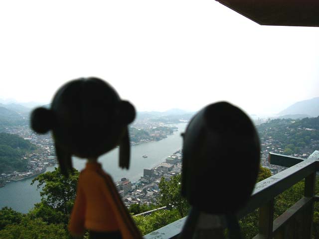 とは言ってもさすが山の上。 風も強いけどその眺めは最高です 右から左へ尾道水道が一気に見渡せるパノラマビュー 「ううん馬鹿と何とかは高いとこが好きってホントだね」 伏字の意味無いじゃんそれ
