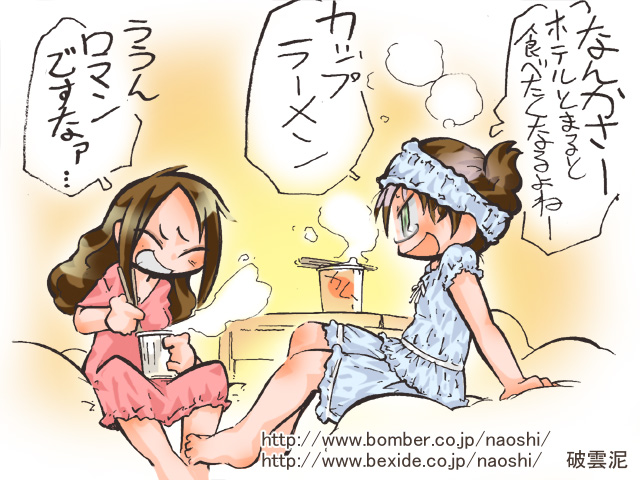 「コンクリだったら東海道線の大船〜戸塚間に似たようなのあるよ」 「いや、アレ住宅か学校だし…」 目の前の川には門前町が丸々沈んでいるそうです。 もともと川の氾濫の多い地域で草戸稲荷も 中洲にあったのが移築されてきたとか 眺めはいいのにやっぱり木造でないことにガッカリ気味の二人です