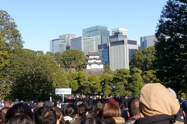昨年ぐらいから若い人が多くなりましたね そして一般参賀 午前中だと上皇上皇后両陛下もご参列されていたのですが 混むの面倒だしついたのぎりぎりだったから余裕をもって午後の会にしました