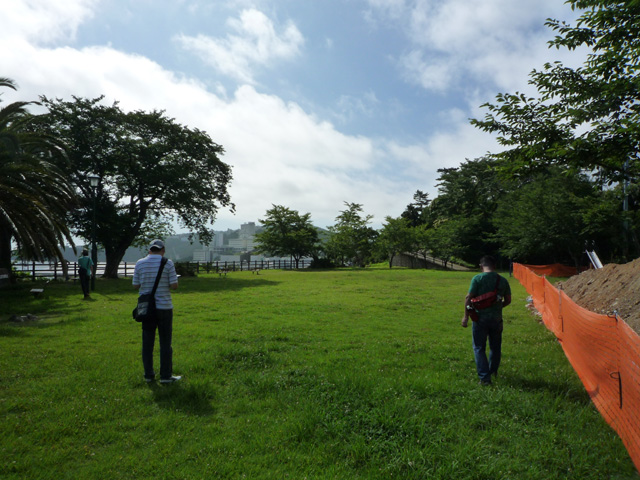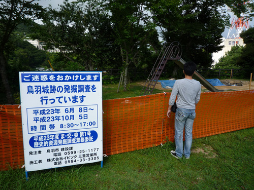 とりあえず天気は回復しそうなので 今日最初の目的地、鳥羽城へとむかいますよ 鳥羽から田丸城2011 pinky版は<まだちょっと待って そんなわけで鳥羽城到着 海側は太陽で照るのに陸側は… むうう雲行きが怪しいなあ…