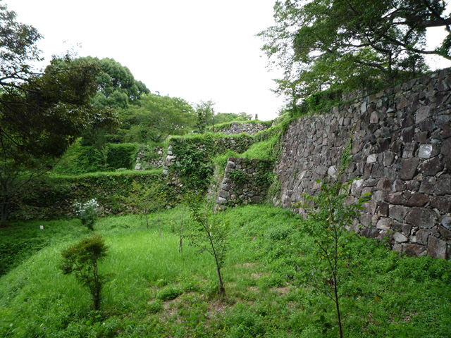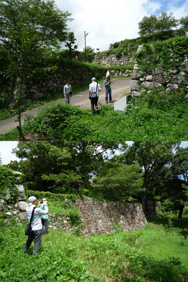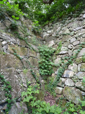 自然に帰ってきてるけどこのあたりが本丸の石垣かな ちなみに本丸跡は小学校の運動場になっていて しかも発掘調査中で立ち入り禁止だったのですが