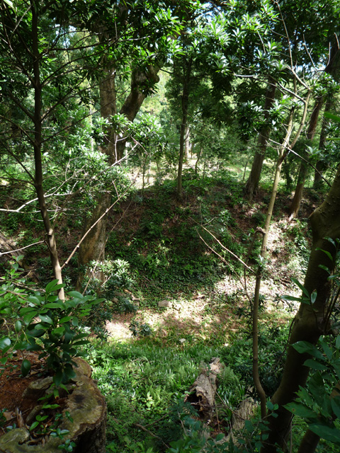 北の丸のお稲荷さんにおまいりしたら 土塁のほうへと向かいますよ 土塁の向こう側はこんな眺め しかし解ってても、一見ただの藪に見えるよなあ
