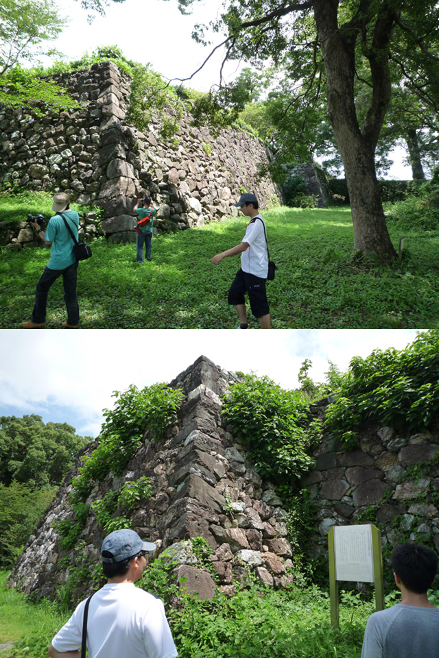 この石垣は県指定遺跡だそうですよ しかし、すぐ下から見上げると思ってたより高さあるなあ