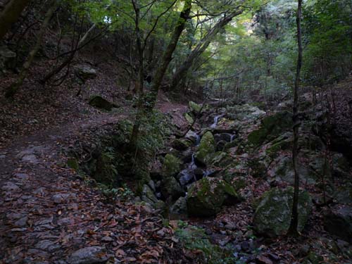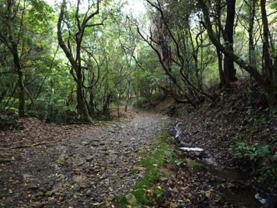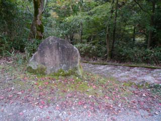 新池を通り越して先ほどの広場まで戻ってきたら再び さっき通った道を登り今度は交差する道路のほうへすすむと 奈良奥山ドライブウェー一方通行出口の交番のあるところに出ました ここから今度は反対方向に進み若草山方面へという予定なのですが でも、その前にもう一箇所。 ここと、先ほどの春日山石窟物の間に穴仏というのがあると ガイドブックの地図に記されています。 ココまで来たんだからやっぱ見ておかないと勿体無いってわけで ドライブウェーを戻って穴仏方面へ山へ分け入っいくと……