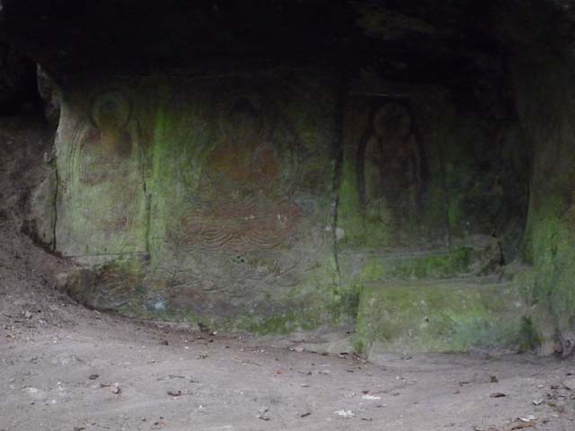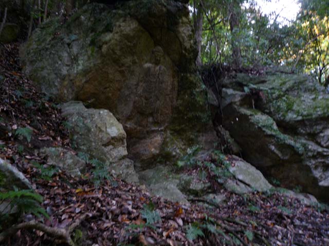 そして遊歩道からさらに上へ数m登った そのさらに上のところに目的地春日山石窟仏がありました