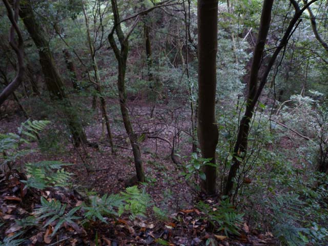 こっちも不鮮明だなあ。 くそう本物は凄くいいのに こういうのって家に帰ってから撮影失敗してるのに気づくんだよね ふっと振り向いた風景 下のほうにはしる二本の白い石畳のさらに下のほうが歩いてきた遊歩道です。 ガイドブックの地図だとこのあたりの分岐から 曲がってさらに奥に行ったところにあるように書かれていたのですが …全然ある場所違うじゃないかい