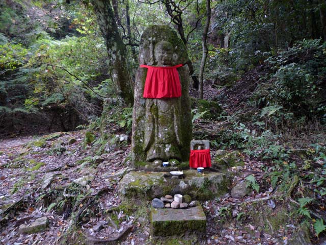ちょっとカメラの望遠では届かないのでどうしようかなと思ったのですが なんか登ろうと思えば登れそうなので登ってみたら すぐ目の前まで登ることが出来ましたよ でも、雨でぬかるんで足場すべるんだよねえ…しかもピンぼけだし こちらは夕日観音のすぐ脇にある三体地蔵