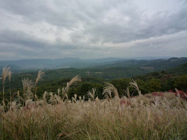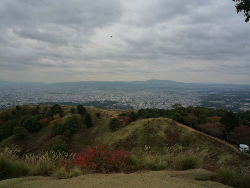 そして南大和方面の眺めー 若草山って大仏殿裏に見える樹のない山なんですが 木が無いおかげで遠くまで見渡せますねえ