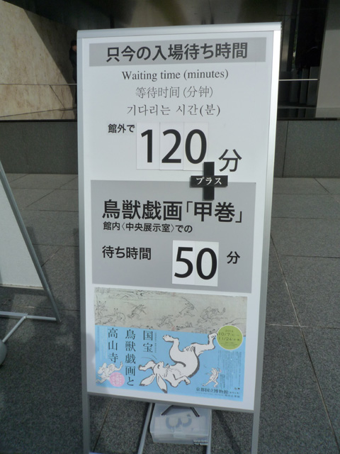でもさすがに鳥獣戯画甲乙丙丁4巻がすべて展示 ってそうそう有るものでもないし折角展示されてるんだから全部見たいしね 結局11時ごろ並んで出てきたのは2時過ぎでした 正直甲巻の並びが正直半端なかった… 4巻全部見ると何で甲だけがあんなに有名なのかがなんか良くわかる たぶん一番絵がかわいくコミカルだから 乙は擬人化されてないので印象薄いし 丙は擬人化されてるけどなんか絵がかわいくない 丁は人物だしかなり線を飛ばして描いてる でも個人的には一番コミカルだと思います 高山寺関連は空いていて見やすかったし 明恵上人関連は書がメインだけど とはいえ宗教観というかそういったものが垣間見えるよ あと犬の置物が可愛かったです しかし京都国立博物館始めてきたけど良いなあこの建物 あとは大宰府の国立行けば全部行ったことになるね 流石に数時間たちっぱなし出足が辛かったので軽く一休み