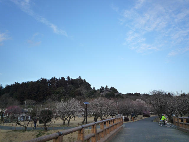あの高台の上が偕楽園 時間があれば水戸城址もぐるっと廻るつもりだったんだけど 道路になってる空掘り跡しかまわれんかった