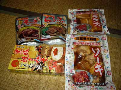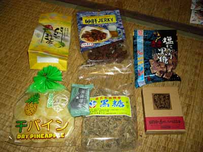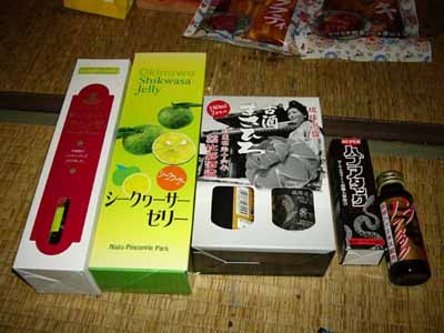 そんなわけで実質二泊三日の沖縄旅行 急遽行き先が変更になったこともあって 工程を考えた肩大変だったろうなあとおもいつつも もう一寸じっくり回りたかったなあ戸か思ったり 「とりあえず、こんなぬるいのを沖縄だと思わないでいただきたい 新の沖縄を満喫したければ離島に行こうぜ離島!!」 BY.chaola氏談 というわけで恒例のお土産一覧 ハブアタックは病欠の某まさみねこ氏へのお土産
