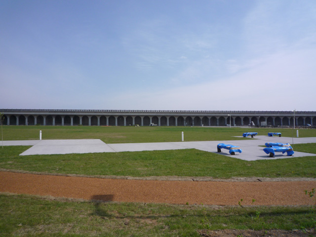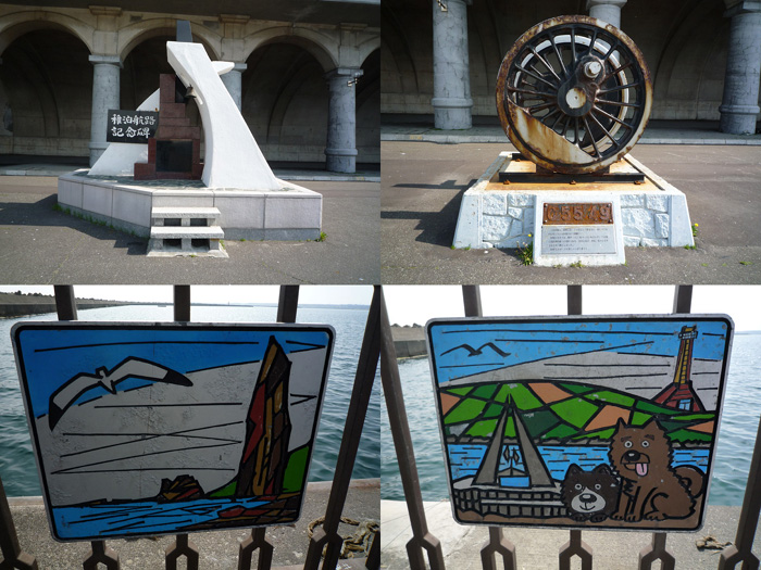 海の近くなのでモニュメントとかは思いっきりさびてますな そして手すりにあるイラストにもタロとジロ