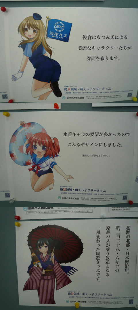 瀬戸邸から稚内駅まで戻ってきたら 沿岸バスの萌えっ子フリーきっぷの掲示をチェキ!! 回り普通に人が一杯いるからちょっと恥ずかしいぞ