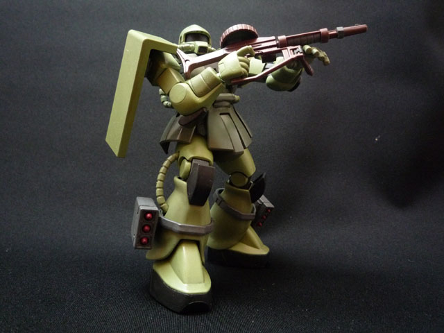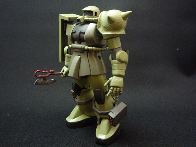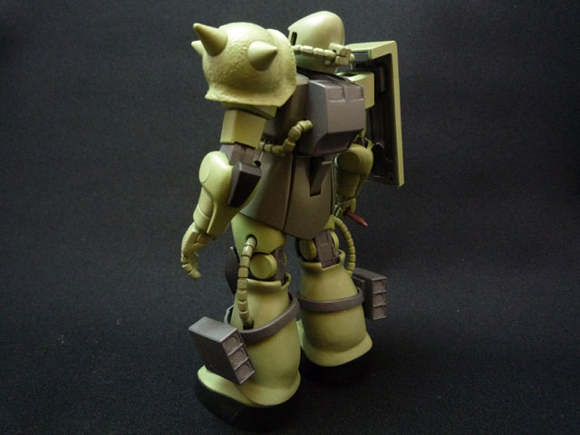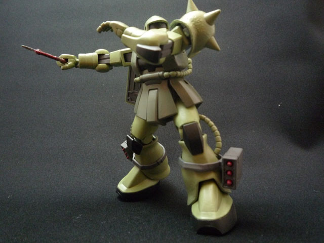 0900618 脹脛のミサイルポッドはもう一寸固定しやすいようにしたほうが良かったかなあ… キットはHGやMGにありがちな変なエッヂがそこかしこに立ちまくっていて 特に足回りが気になったのでパテを持って全体的に削りまくってエッジを落としています