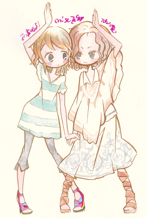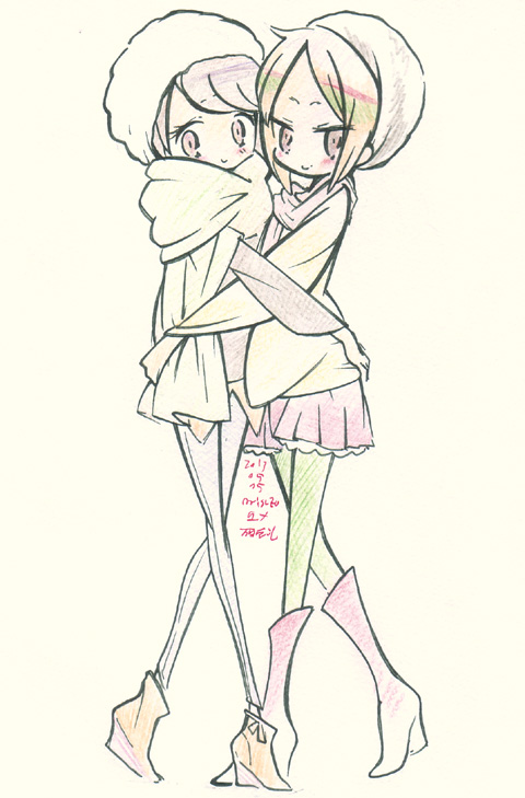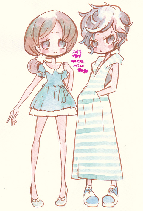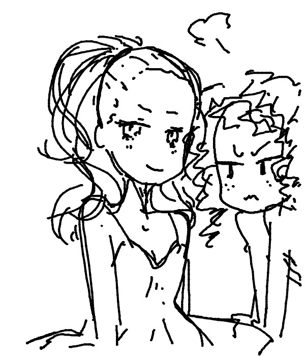 7/4 ・這いよれニャル子さんW(最終回) 結構真っ当な理由で地球を去らなければいけなくなってるのが意外 当然「ニャル子がハイテンションにぶち壊してうやむやにするんだろう」と思わせておいて じっくりとニャル子と真尋の葛藤を描いているのは好印象 パロディやギャグに隠れがちだけどラブコメ要素も気を使ってるよね 「いくな」といってほしいニャル子 「いくな」といっていいのか迷う真尋 邪神たちがいる生活が自分にとってなんだったのか 自分にとって彼女達、ニャル子はどういう存在なのか 「いくな」といってしまうことで犯罪者にしてしまうのがよいことなのか どういう決断を下すことになるのかが結構どきどきさせてくれる やっぱり最後は大暴れ(笑)してぶち壊しちゃうんだけど 前半でじっくりタメを持ってきてるのでメリハリも利いていい感じ 最後は本当に「よかったよかった」って思わせてくれるのもいいね ・ブラザーコンフリクト(第一話) 原作はオトメイトのゲームなのかな 父親の再婚により、いきなり13人の兄弟ができてしまうヒロイン シスプリじゃあるまいし(笑 これに勝てるのはベイビープリンセスぐらいか? (メディアワークスの19人姉妹+母親との共同生活企画) 真っ当なキャラクター紹介回。それも一気に全員出さず 一部のキャラはまだオアズケというのはありがたいところ しかし、全員イケメンなのはともかく 弁護士に小児科医に僧侶に美容師に歌手に双子の声優に同級生と ハイスペックより取り見取りだなあ ヒロインを群がる男共から守ろうとがんばるペットのリスが 逐一「こいつの名前は〜で性格と周りの評価はこういうやつ」って解説してくれるんのはすごく便利 無茶な設定は一気に押し通した感じもするんで 二話いこうどうなるかな。 ・義風堂々(第一話) 総監督原作者かよ。しかも脚本今川ってちょっと楽しみになってきた 思ったよりも楽しいしおもしろい もうちょっとおいかけようかな ・たまゆら・もああぐれっしぶ(第一話) 全シリーズのおさらいを含みつつ、ぽっての新たな目標の提示 うまいなあ。「おさらい」の部分もあまり総集編くさくならず あくまで思い出を振り返る構成として綺麗に成立してる 考えてみればこのアニメのキャラってみんな何かしらの特技を持っていて 今まで「仲間内(まわり)」だけに向いていたベクトルが 一期シリーズラストの「私達展」で外へさらされたわけで そこで欲(といっていいと思う)がでてきたのは当然の流れ 新キャラとのからみに部活動 進級によるいろんな「新しい出来事」が いったいどういう風に描かれるのか。 今期も楽しく見ていきたい ・Free!(新番組) 京アニの男子水泳アニメ 思ったほどあざとくなく順当な少年水泳アニメ 楽しく水泳に打ち込んでいた小学生時代と現在の 4人それぞれの対比と屈折はなかなか悪くない オーストラリア留学していた旧友は強豪校に入学してるけど 練習にいなかったのとやたら主人公達に絡んでるあたり ドロップアウトして帰国とかそういう流れかな がんばってきたけど結局レベルの違いを思い知らされて帰国したけど やはり水泳を捨てることができない系の (だから過去が疎ましく感じている。とか?) とりあえず楽しく追いかけたい あと、今年はあまり絵を描いてないので らくがきー 先日電車の中でスカートをたくし上げてた娘
