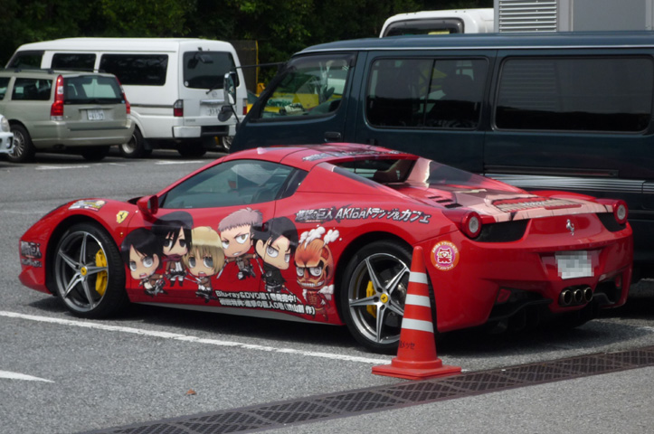 進撃の巨人の痛車みかけたのでー PLUMブースではリアル諏訪姫フィギュアが参考出品 うーんでもフィギュアってでかいから pinky:stやねんどろいどでもでかいって思っちゃうもん
