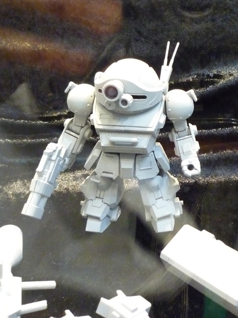 「骨格のままだとディスプレイのエリアが決められてしまいますが ギュゲスをかぶせるとコスプレ扱いになるので会場内歩けます!!」 という冗談が半分マジっぽくて大笑い 壽屋のDスタイルスコープドック。元がずんぐりしてるので違和感ないなあ