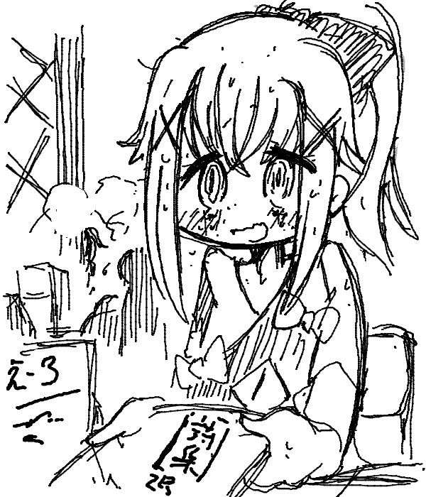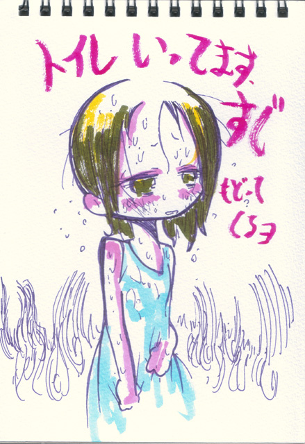 ちゃんと出す本の数だけつくろうやっぱ 8/12 というわけでコミケ終了 初めて最終日じゃない日に配置されたー 今回はなぜか会場内に女性が多かったように感じますね 来てくださった方ありがとうございます pixivやtinamiで見てきてくださったかたもいて あちらこちらに画像上げといてよかったという感じですね 細々とやってる個人サークルですがまあそこはそれ さて 今回のコミケ ツィッターでもれ聞こえてきた初日の動向が 「あれ?これやばいぞ」って感じで 当日駅に着いたらいつになく蒸し暑くって さすがにペットボトルを一本余計に用意しました (いつもは多くて一本。) コミケって健康的なイベントじゃないから 昔から「寝てない食べてない何も食べない」で参加してる人が必ずいて それで倒れる人が多いから昔から救護室が用意されているんですが 開場前からすでに5〜6人ぐらい 開場後も10〜20分に一人ぐらいの割合で 熱中症と思しき人が運ばれテクノはさすがに驚きました というか、「運ばれていく人」をあんなにみたのははじめてです しかも運ばれてく人と結構な割合で 帽子タオルヒヤロン装備で手か首にペットボトル持ってるので すくなくとも「何も対策せずに倒れた」ってわけではなさそう 初日のうわさでは「救護室に人が入れない」状況だったようですが 二日目は初日以上の人が倒れ 「入れない人が救護室周りに並べられ、スタッフルームも開放してるけどそれでもまだ収容しきれない」 さながら野戦病院のようだったというはなしまで いったいどんだけだよ そして晴海新館二階に出現し会場内に雨を降らせたといううわさのコミケ雲 雲というより霧っぽかったですが僕自身見たのは初めてです 晴海のときは未成年だったから成年エリアの新館二階には入れなかったので とにかく水分とっても とったらとった分だけ吸収されて その分全部汗で出ちゃうという状況だったので ほとんどトイレに行きたくならなかったというんのはちょっと驚きました ゲリラ豪雨が開場手前で消滅したことを驚いてる人がいたけど コミケは何度か台風の進路すらかえさせたことがあるので略 どんなに雨の予報でもコミケの日だけは必ず晴れるという伝説もあったしね というわけで次回は冬コミの予定です 何かきまぐれ起こすか起こさないかわかりませんがそのときは ここなり何なりで書くと思いますよ 8/7 そんなわけでコミケ作業中ですが とっとと見てしまおうってことで行って来ました SHORT PEACE 大惨事とはいわないがこれはちょっとなあ テーマはあるのに全体を通してまったく統一感というか 全編を貫くものがない、ばらばらの短編をただ流してるだけって感じ ショートショートのオムニバスはただでさえ一本一本の物足りなさがあるのに これは正直まずいんではないだろうか 一本目の「九十九」とラストの「武器よさらば」は 両方とも「捨てられた・忘れられた物を掘り起こす話」であり ラストカットは富士山。 過去の富士で始まり未来の富士で終わる そこのかぶせは悪くはなかったが… 「九十九」 アニメーションや演出はあまり好きでないんだけど 一番綺麗にまとまっている 「ありがとう」が思いのほかぐっとこなかったのは残念 「火要鎮」の物語の閉めのまずさはいかんともしがたい 絵巻物を意識したレイアウトとその始まりはちょっと期待したけど けっきょく「そういうのの上っ面をまねした」だけでしかなく残念 「GAMBO」はテンポと構成のまずさ 台詞だけで設定語ってる感じ 「武器よさらば」 80年代漫画的な内容。というかたぶんこれ原作読んだことある 思ったより悪くなかったけど中盤以降でなんか話が途切れちゃった感じなのは残念 大友克洋といえばたぶん最後に見たのが スチームボーイだったけどあれも酷いアニメだったなあ というわけで昨日見かけた女子高生