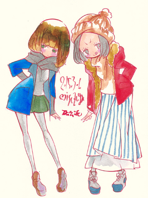 今年はこんな感じです あと、昨年の電子ノートの落書き 途中までしかUPしていなかったので ちょっと画像の乗せ方考えなくちゃまずいよなあ 枚数多いし 女の子 女の子 女の子 女の子 女の子 女の子 女の子 女の子 女の子 プリパラ第一話のあとに描いた まるっクロとPさん 女の子 女の子 女の子 女の子 女の子 どこでもいっしょ15周年 めずらしく男の子 猫耳めがね 女の子 魔法科高校の劣等性LOSTZERO 魔法科高校の劣等性LOSTZERO メイドさん 女の子 女の子 女の子 クロ トロ 女の子 1/14 年明けから色々回った美術館関連をザックリと コミケ前であまり回れなかったので なんか焦ってみてまわってるな こういう見方は印象が薄くなるのでよろしくないんだけど 多分しばらくは焦り続けてると思う ・鎌倉国宝館「肉筆浮世絵の美 年明け一発目。初詣行った帰りにやってたのでなんとなく 肉筆画は機会機会でそれなりに見てる気がするんだけど 初めて見るものが多く安心 ・三井記念美術館「雪と月と花 展示されているものが雪月花どれをテーマにしているのか パッとみてわかるよう解説パネルに記載されてる親切設計 もちろん展示品みりゃおおよそわかるんだけど 案外勘違いも多くだんだん「これはどれだろう」とか ゲームッぽい感じで見始めてしまう不思議(上手く仕掛けにはまったともいえる) ・三菱一号館「ボストン美術館とミレー展 確か見たような気がするんだけど見てなかった気もするので行ってみたら やっぱり見てなかった。最近こういうの多い ポスターにもなっている「種をまく人」はぐっと来る迫力 「馬鈴薯植え」だっけな。物議を醸して 「馬鈴薯を書くのがなぜ不謹慎なんだ」とか憤慨した(うろ覚え) ってエピソードが面白い ・東京ステーションギャラリー「東京駅百年の記憶 東京駅の成り立ちから現代にいたるまで 建築当初と高度成長期、現在の東京駅とその周辺レイアウトのジオラマが面白い 高度成長期は周辺ビルの高さ制限があったのね 今は高層ビルだらけで窮屈だから高さ制限残しとくべきだったんじゃないかなあ JR東京駅とその周辺の地下鉄線ホームへの通路とホームの再現レイアウトも 解りやすさとその広範さに「ほへーっ」って感じ (つながってるだけなら東銀座まで行きそうなもんだが流石にそこまでは無かった) 東京駅を題材にした絵画や復元工事のときに発見された当時の部材 設計のゼロックス(青焼き)などもありたのしい しかしここ、入館するまでがなんか回りくどいんだよね ・出光美術館「物語絵 小難しいことは抜きにして 文章から想像、インスピレーションを受けて描かれた絵画 ぶっちゃけファンアートとか二次創作とか そのぐらい噛み砕いて見てしまっていいと思う (映画化以前のハリーポッターのファンアートとか 映像化以前の戦闘妖精雪風のファンアートとか ザックリとそのぐらいの感覚で) 「どの物語のどの場面」という解説はあるので突き放された感はなく 描き手の文章から絵、読み手の絵から文章の こいうふうに相互に作用してくんだなと ・松屋銀座「古田織部展 茶道具は何故か見てるとお腹が減ってくる まあ茶の湯は料理でお客をもてなすし 織部(風の食器)は普通に食卓に並んだりもするので多分そのせい けして下の階でラーメンどんぶり展をやっていたからではない(苦笑) あーやっぱ感想が荒いな 徐々にペース戻していこう 年末にいった分もかいてないけどまあいいや 1/13 ・アルドノアゼロ(新番組) なんだかなあって感じだったシリーズのまさかの二期 それでも姫と主人公があれからなにがどうなったかということと それからの泥沼な地球と火星(からの攻撃部隊)の状況は提示されたのは悪くないかな 一期ではどんどん弱くなっていった火星カタクラフトも そのオーバーテクノロジーっプリを発揮し あいからわず馬鹿冷静な主人公にしてやられる展開はお約束 まずまずの出だしだけど、前期も面白かったの序盤だけだからなあ ・DOGDAYS´´(新番組) 人死にの出ない「国家間のスポーツ大会」のようなゆるい戦争をしている異世界を舞台に のほほんっと楽しめる好シリーズ三作目 なんだかんだで一期も二期も「お?」と思わせる仕掛けがあり 楽しくもていたので今回も楽しく見ていきたい ・夜ノヤッターマン(新番組) 作画(アクション)は好み。しかし原点のギャグ描写である 髑髏煙をリアルでやるというのも結構な悪趣味だな 三悪とキングダムの関係にヤッターマンへの疑念と目標設定はまずまず しかし正義と悪の入れ替えだと2000年の「キラメキマン」で失敗してるからなあ (まああれは準備期間が無く見切り発車だったらしいけど) すでに発表されてる設定だとドロンボー一味に合流するらしい少年少女が あきらかにヤッターマンなので、 キングダムのヤッターマンはドクロベエなんじゃないかなあ ・純潔のマリア(新番組) 強大な力を持つ魔女が純情な乙女(控えめな表現)というギャップはなかなか CM見ると原作は完結してるようだし中途半端な展開にはなら
