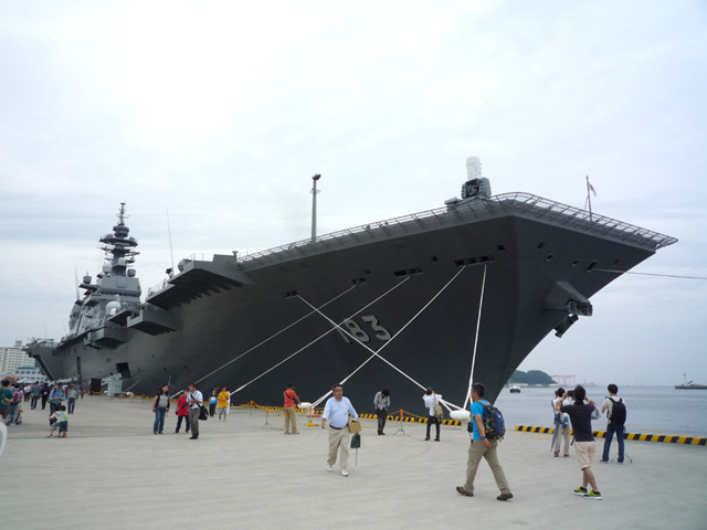 いずも。でかいです 宇宙戦艦ヤマトぐらい もうちょっと詳しく言うとビックサイトの東123に収まるぐらい