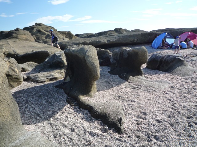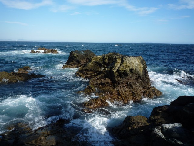 タモリ倶楽部でもやってたけどここの岩場地層と断層が見れて楽しい あと、波と風で浸食される様子が見て取れてたのしい