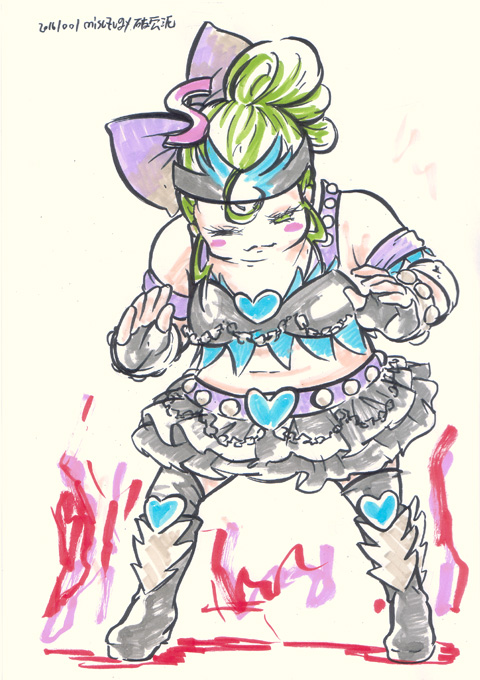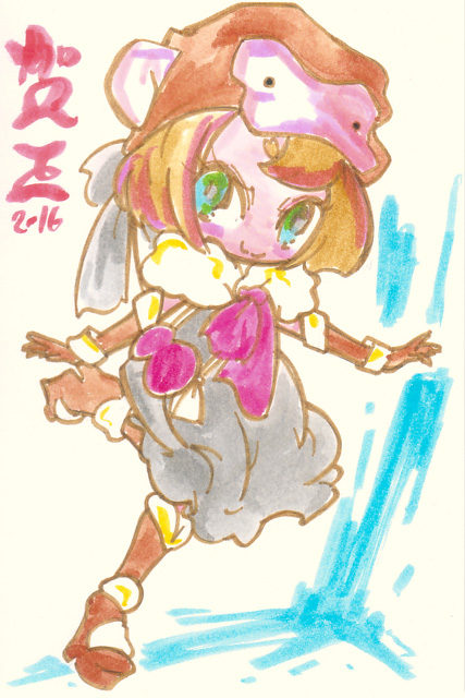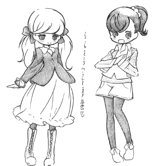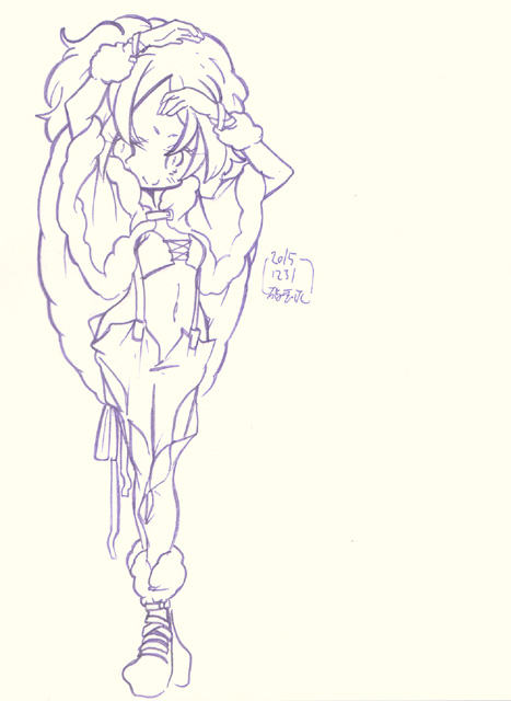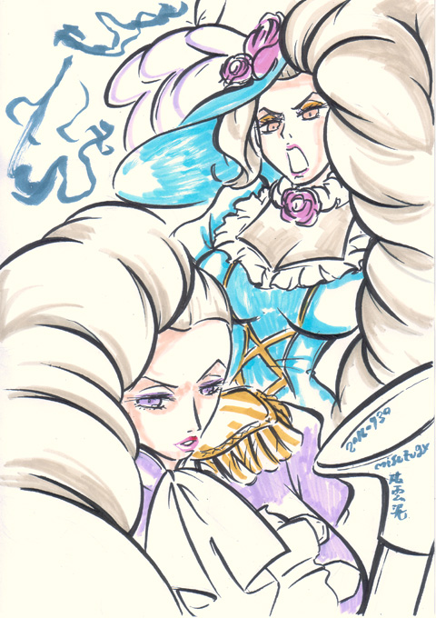 ざっくり落書き やっぱ鉛筆線が薄すぎた 2/19 というわけでみてきました ・キング・オブ・プリズム 原作であるプリティリズムは見たことないし プリパラノ枠で流れていたCMをみるかぎり あまり好みではなさそうな雰囲気だったのでスルーするつもりだったのですが プリパラの感想をネットであさってるときに やたらあつく作品の魅力を語ってる感想を見つけ その後もツィッターなどで頻繁に 「とにかく面白いから見て!!プリリズしらなくても面白いから!」 って感想が流れてくるのでなんとなく気になったので 思い切ってみてきました CGとキャラの造詣はやはりあまり好みではなかったものの シンプルでテンポの良い明快なストーリーに 照れなのかギャグなのかマジなのか 「なんかすごい」映像をぶっこんでくる あーこれは楽しい。たしかに初見でも十分たのしめる 高揚感と戸惑いとときめきを一緒くたにぶっこんで じっくりとミキサーにかけたかのような作品。楽しい (とわ家こういうホモホモしいネタを男性スタッフが作ると 画面全体から「照れ」がにじみでてきてみててなんか恥ずかしい) 敵対する事務所のいかにもな悪役っぷりと その強大さからこの跡どうなるんだろう? …とか思ってたらえらく尻切れトンボで終わり あまりのことに上映終わった後 劇場にざわめきと笑いと 「…え?どういうこと??」という戸惑いが湧き上がってました(笑) 入場のとき渡された人気投票用紙で 次回戦うキャラが決まるってことみたい っていうか前編なのかこれ! まったく基本情報仕入れずに行ったからマジでびっくりしたよ 2/14 科学博物館で開催中の「ワイン展」にふらっと行ってきたのですが なんだろう??ここの展示は解説パネルメインで あとはサンプルと体験コーナーみたいなのが多く 知的好奇心をくすぐる構成であるはずなのに いつどの展示に行っても妙な混み方をしていて回りにくい なんというか導線が確保されていない感じ もったいないよなあ。ワインの歴史から各地域の酒器の展示 (梅雨があるせいで栽培に向かない)日本における ワイン用ぶどうの栽培の歴史に 体験コーナーもなかなかに興味深く面白いものが多いのにな 本館のほうのミニ展示、日本の天文学関連のほうは 見やすくコンパクトにまとまっているので なんで企画展がいつもあんなにストレスたまるのか不思議 ついでに世田谷美術館で始まった「ファッション史の愉しみ」 1830〜1900年代のヨーロッパのファッションの図版と実物の展示 あーこれはいいなあ。各時代の装いのシルエットの違いがよくわかる 子供を連れた婦人の図版で子供にハーネスをつけてるのがあって どこに行くかわから内子供の管理に今も昔も苦労してたんだなってことがうかがえる (ちょっと前「子供の権利侵害だ」って賛否が沸き起こったね。子供用ハーネス) シルエットが極端になり過ぎて 小島功かギャートルズみたいになってるのもあって これどこまでスケッチのディフォルメでどこまで写実なんだと にやりとしてしまうところも まあ基本的に「実物まんま」なんだけどね 人の「美への追求」はどんどん珍奇極まるほうに走ってしまうのだなあ かえりに世田谷城址に行ってみようかとか思ってたのですが 衣替えに失敗して冬の格好で行ってしまってて くっそ暑かったのでとっとと引き返してきました この二日あつかったよね この季節はいつまた寒くなるかわからないから着るものホント困る でもこのあったかさで梅も良い感じに咲きそろってきたろうから 今度の週末あたり写真鳥に行ってこようかしらん 2/13 先週発売された「ボンバーマンジェッターズ宇宙にひとつしかないBD-BOX」 発売日にゲットしたけど確定申告の作業でなかなかあけられず 今週やっとあけたのですが あーやっぱ面白いなあ 当時の録画は残ってるけど 余り状況はよくないし 当時発売されたDVDBOXはプレミアついて高くなってるので 今回のBDBOXはすごくうれしい ただ、ひとつ残念なのは 前期OPが再編集版のみの収録であること 編集される前の初期版のほうがカットの並びが自然だったので そちらが差し替えられてたのがものすごく残念 (そういやあブックレットの当時のスタッフや声優のコメント 監督のコメントだけ無いんだよね。何でだろう??) BDBOXといえば劇場版の流れで ミルキィホームズ一期から三期までのBOXが発売されてるのですが サマースペシャルのために三期(錦織監督版)のBOX買うのもなあって感じだし 優先順位的にはどう考えてもジェッターズなのでスルーしていたのですが プリパラ一期のBD-BOX発売決定!! 全部録画残してるけど(二期第一話だけちょっとミスってるけど) 森脇真琴監督作品は応援したいし 二期もBOX化してくれるかもしれないから かっとこうかしら(汗) というか そろそろマイメロディをBDBOX化お願いします 「きらら」もちゃんと買うのでお願いします 全話録画残ってるけどおねがいします ミルキィホームズにプリパラと 森脇作品のBOX化続いてるから マイメロディもこ