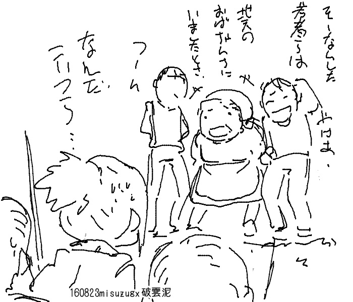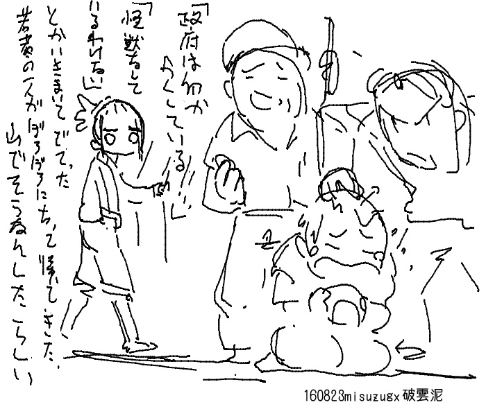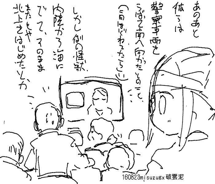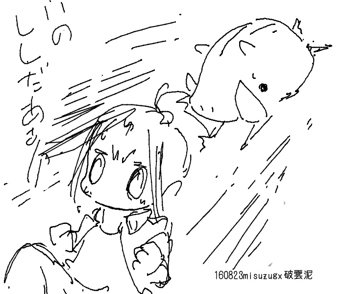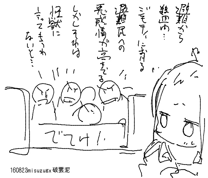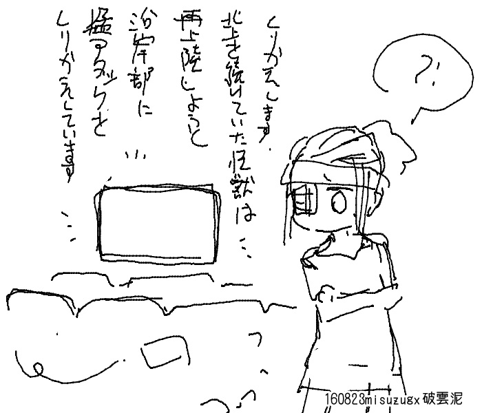 怪獣の出てこない怪獣ネタはたぶんブームであった当時からあると思うので おそらく10番煎じぐらいだと思う 避難所を逃げ出す鼻息荒いやつを主人公にしたほうが物語に動きが出るけど それだと最後に怪獣に遭遇させないとうまくまとまらない気がするから とにかく一切怪獣の姿は微塵も出さない とかおもってたけど 何となく検索かけてみたら 怪獣の一切出てこない怪獣映画として 「大怪獣東京に現る」という98年の作品があるんですってね タイトルまでダダかぶりだよ!! 8/14 というわけでコミケ終わりました。 来てくれた方ありがとうございます 今回別のネタを考えていたのですが とても間に合わないと判断して突発的にネタを変更しました だからというわけではありませんが、久々にやばい状況になってしまいました まあ、ギリギリ間に合いましたけど ちょっとスキャナーのスキャン精度がいまいちなかんじなので さすがにそろそろ買い替えを考えないと駄目かなあ そうそう、久々に創作少女と鉄道ミリタリー評論旅行系が 同じエリア配置だったので、いつもより早めに撤収して 本当に久々に本を漁りに行ってたのですが サークルチェックしてなかったので ネットで気になってたとこに行き着けませんでしたとほほ けっきょく創作少女までいけなかったし 以前回ってたサークル探そうと思ってたのに 今回は看板用意できなかったので 会場で描いたサークル看板
