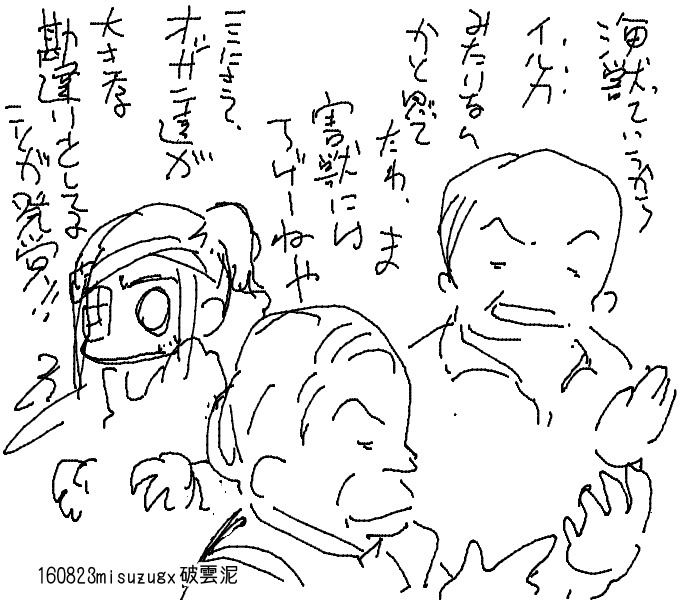 生トロ以外にもモノクマやパワプロくんにミクダヨーさんも来ていました パワプロくんはなぜかずーっとボクサーの構え(野球できないからね) ミクダヨーさん無双でしたね。ダヨーさん可愛いわマジで 生トロもそうとう芸達者なんだけど それ以上に凄いアグレッシブなキャラですよ。ミクダヨーさん そりゃ、ダヨーさん出てきたらアレだけの人垣できるの当たり前だよ いったいどこのグラドルだ ・ふらいんぐうぃっち(最終回) 放送休止や放送時間の移動が極めて多く 本当にこれ1クール放送したのか疑問に感じてしまうんだけど どうもちゃんとやったっぽい。というぐらいには 最近にしては珍しいぐらいにゆったりまったりした作風 (今で言う日常系アニメが「癒し系」といわれてたころは こういう作風の作品多かったけど) かなり間を多くとってスローペースな作品なのに それで構成が破綻していないのは良いところ 「魔女という異物」が「異物として風景に馴染んでいる」 のも良かったのではないだろうか 「魔女がやってきた」前半と「魔女見習いが魔女の世界を垣間見る」後半の 組み立ても無理が無く物語に起伏をもたらせていたと思う 最初おもった以上に楽しく見れたなあ ・三者三葉(最終回) あー凄く最終回っぽい最終回で本当に最終回なんだなあと 途中(脚本構成的に)「ヤバイ」回があって 序盤の調子のよさが途切れてしまうのではと心配にもなったけど 最後まで息切れすることなく突っ切ってくれた 園部とか原作だとけっこうたってからの登場だし 相当エピソードの入れ替えを行ってるけど その再構成具合も良かったよね 最初「あまりあっていない」と感じた声も けっこう早い段階で馴染んで「この三人の声ってこういう風だよね」 って感じるようになっていったのでやはりこの配役で良かったのだと思う やたら動かしまくる作画、特に猫のフルアニメにばかり目が行ってしまいがちだけど そこを抜いても十分いいアニメ解釈だったのではないかと思う 最後で面白くて本当に良かった 6/26 くまみこ最終回の感想で 「あのオチは、”成長も変化も無い日常系アニメと それをありがたがるアニメオタクへのアンチテーゼ”」 というのがあって、 なるほどなあって思ってたんだけど (昔からアニメヒロインの重要な要素に(保護欲をくすぐる)幼児性があるしね) シリーズ構成と脚本を担当してた作家が 最終回放送直後に自身のツィッターを削除し フェイスブックのプロフィールから くまみこを消去してたということなので たぶんアンチテーゼではないのだろうね 最終話放送直前にお知らせツィートしてたらしいので 狙ったのではないとおもうけど 自身の経歴から抹消するってはじめて見た (そこまでナイーブになるようなことだったのかどうか) 世間の酷評で怒り出すスタッフとかはたまに見かけるけど 最近だと実写版進撃の巨人とか ・キズナイーバー(最終回) しんどそうなネタを飽きさせずに最後まで見れてしまったので これはこれで悪くなかったとは思うんだけど 前半の思わせぶりがなんか微妙に肩すかした感じがちらほら 「傷で絆を結ぶ=傷を手放すと絆が失われる」と持ってきたのは悪くなかったんだけどね なんか青春の主張みたいなオチになっちゃったなあ ・迷家(最終回) よく考えたらこちらも心の傷の話だったんだよね ななき村で「なぜこういうことがおきるか」の設定説明をせず 「そういう場所だから」というとこに留めたのは良かったと思う 種明かしが終盤だったのに飽きずにさいごまで興味をひきつけられ 全員が村を出るわけではない結末もなんとなく腑に落ちるもの しかしなんか妙にアッサリとしすぎた感じがしなくも無い え?いいのこんなので??みたいな 一番怪しかったこはるんが結局首謀者だったわけで ・ハイスクールフリート(最終回) 何もおかしいことはしていないし、そんな気をてらった内容でも無い 「クラス分けでこういう役職になったから」で始まり 数々の難局を乗り越えていくうちに メンバーの対立や和解を経てチームとして成熟していく 本当に何もおかしいことはしていないし 描きづらそうな戦艦同士の戦闘も迫力を持って描かれてるのに なんだろうこの乗り切れなさ 始まったときに感じた「かみ合わなさ」が 決定的な不具合として最後までかみ合わないまま終わってしまった感じ 個人的には群集劇(というか、ガルパンやヤマト2199のようなチーム構成の集団劇)として 正直あまりうまく行って無いような気がしてて キャラ付けもちょっとわざとらしさ(不自然さ)が目立ち きわめてシリアスな役回りのブルーマーメイド艦隊の艦長がクマミミつけてたりという キャラの役回りとデザインの齟齬見たいなのもちょっと気になった ハイフリ、JRや横須賀とコラボしまくってるんだよね まあ劇中だと横須賀は「母港」という以上の出番はないせいか ラグランジェみたいなごり押し感は無いから。まあいいのかな どうでもいいけど横須賀の近くの汐入は「たまゆら」で