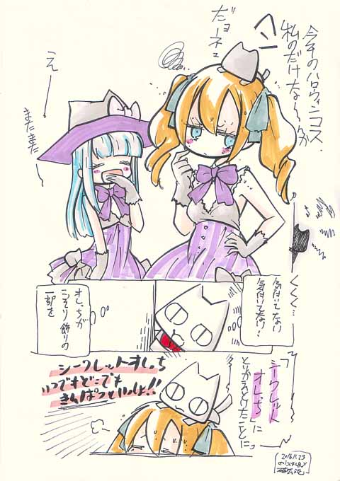 先日山手線で見かけた和猫コスの二人組み アニメ見ながら描いてたら色がおかしくなったもういい 10/20 新番組がひとだんらくしたので やっとおねがいマイメロディくるくるシャッフルBD-BOXの封を開けました ちゅうわけで CG部屋にマイメロくるくるシャッフル記念イラスト上げときました マイメロすっきりが届くまでに観終わりそうも無いなあ くるくるシャッフルはジュンくんが転校してくるから 学校メインの話が多いね で、プリパラ 太陽ペッパーが本格登場したことで スムーズに世代交代が行われましたね らぁら世代の話からのん世代へ しかし「欠点が長所と気づいたことでのびのびと才能を伸ばしてきたらぁら」と違い のんは苦労性だなあ。ちり・ペッパーどうコントロールすんだよこれ しかもまだちりもペッパーもライブ全くしてないし どんなライブするんだろうこの三人 10/19 新番組ラッシュも終わってやっとひと段落ですな