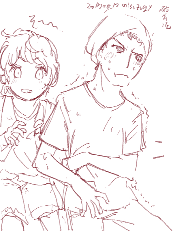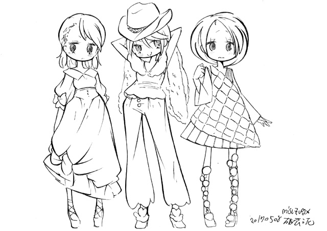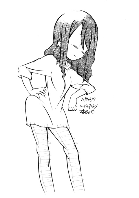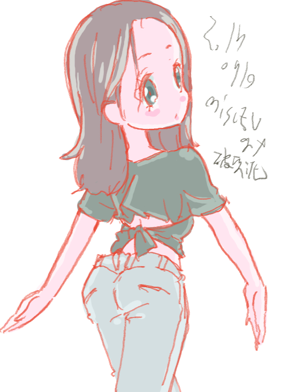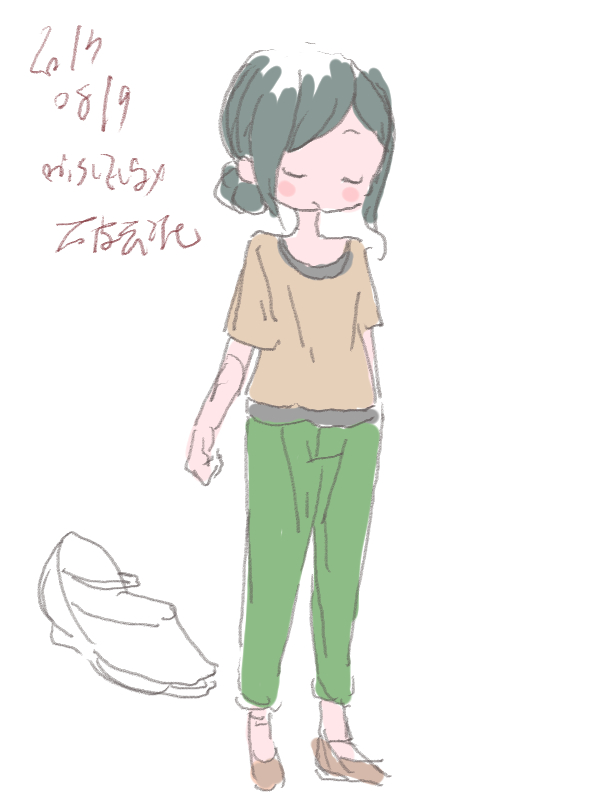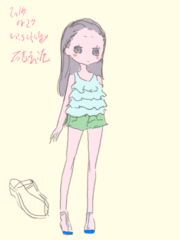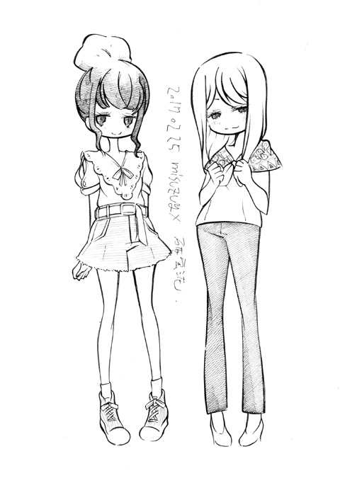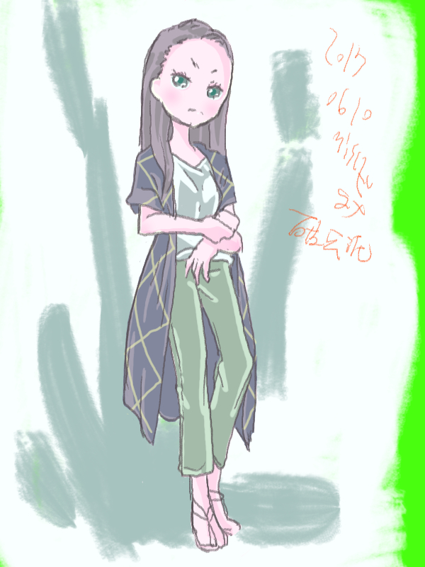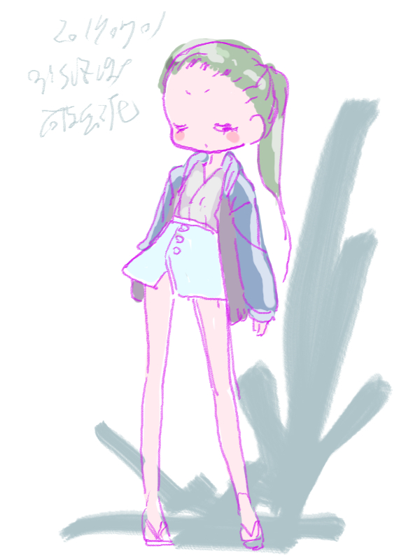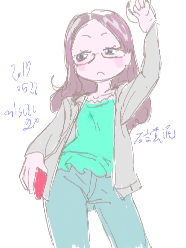 図らずとも前描いたのと同じポーズだった という訳でコミケ前に見に行ってきました ・メアリと魔女の花 ジブリを退社したアニメーター達と米林監督のスタジオ 新スタジオ一作目ということで力はいってるだろうなあと思いつつ 良くも悪くも「まわりは」ジブリ的なものを要求してきてるんだろうなあ …という感じでちょっと恐る恐る視聴 冒頭、魔女の世界から不思議な花「夜間飛行」の種を盗み出す 逃避行のシーンは迫力があり期待させてくれる 「悪役をとことん嫌悪感を感じさせる悪い人に描く米林監督の悪癖」が 押さえられたのも観やすくよいところ 魔法の表現が年度の高いねばねばした液体と表現されるのも 米林監督の陰湿さが良く出ていてとても良い 退屈とコンプレックスの塊みたいなメアリが 魔法の力を手に入れ魔法大学でコンプレックスを自信にかえるあたりも そんなに悪くはなく 宮崎監督の脚本を制御できなかった「アリエッティ」や 不快な部分ばかり強調された「マーニー」とくらべて 見やすく楽しい冒険ものに仕上がってるのでは… と、期待したんだけど うーん これは酷いカタルシスに欠けた退屈な映画 「脱ジブリ」をしようとして なぜか「藤子Fライク」な方向に行きかけて頓挫したかのような 全く突き抜けることの出来なかった中途半端な世界観と人物像 新スタジオ一作目ということもあり力が入りすぎたせいなのか スポンサーからの不必要なまでの過度な要求のせいなのか なんともちょっと残念な感じの映画だった 良い部分や良い描写も多いんだけどね やはり魔法大学や好調と教授、 つまり魔法そのものに魅力が感じられなかったのは辛い 米林監督、一作ごとに良いところは出てきてると思うんだけどね なんというか作風にどこか陰湿なものを感じるので とことん陰湿なものを一作作ったら すごい大爆発するんじゃないだろうか スポンサーが許してくれないだろうけど 8/15 コミケ終わりました 来てくださった方ありがとうございます 不手際があって申し訳ありませんでした 次は冬の予定です よろしくお願いいたします そんなわけでしばらく上げてなかった 落書きを 町で略