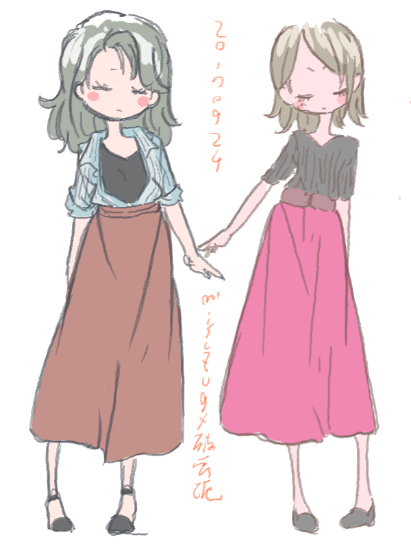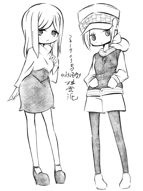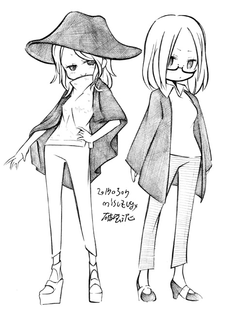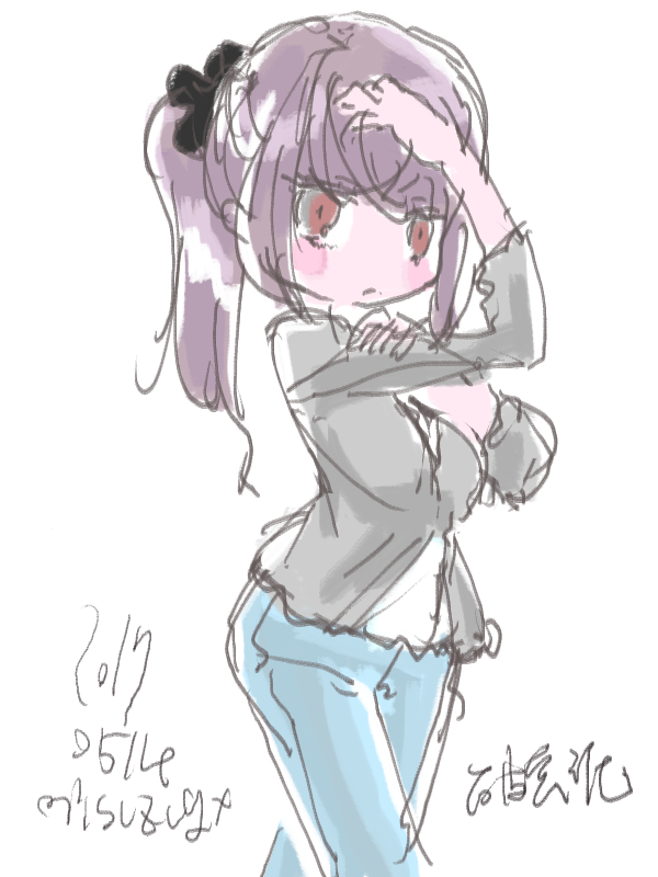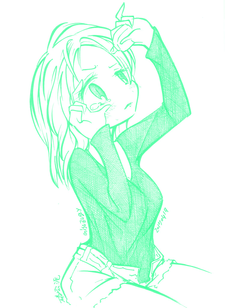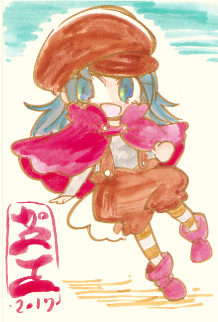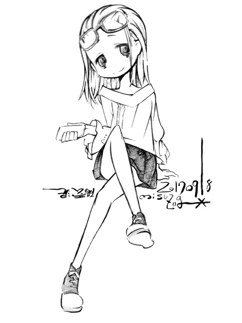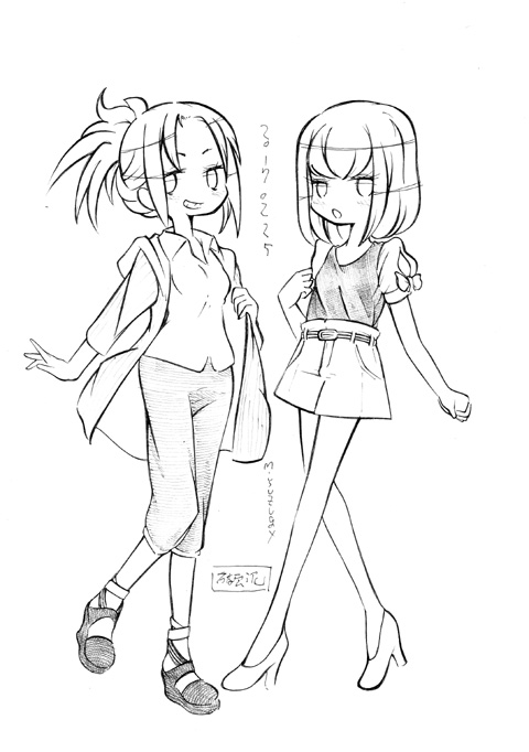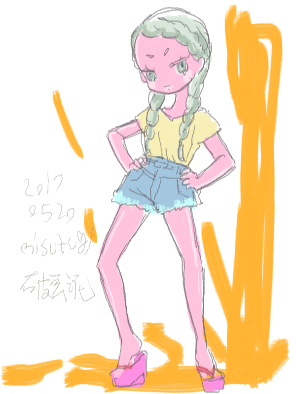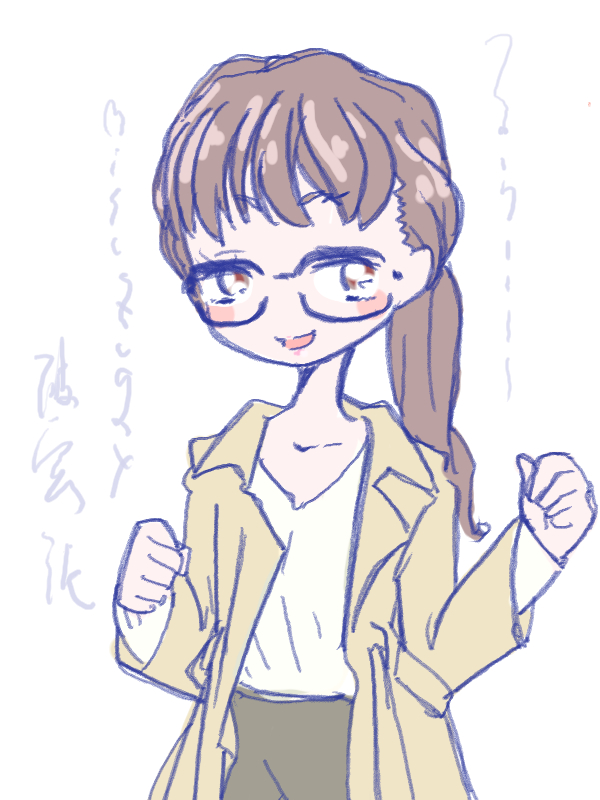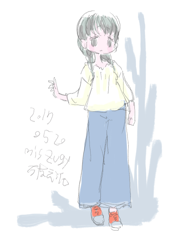 図らずとも前描いたのと同じポーズだった という訳でコミケ前に見に行ってきました ・メアリと魔女の花 ジブリを退社したアニメーター達と米林監督のスタジオ 新スタジオ一作目ということで力はいってるだろうなあと思いつつ 良くも悪くも「まわりは」ジブリ的なものを要求してきてるんだろうなあ …という感じでちょっと恐る恐る視聴 冒頭、魔女の世界から不思議な花「夜間飛行」の種を盗み出す 逃避行のシーンは迫力があり期待させてくれる 「悪役をとことん嫌悪感を感じさせる悪い人に描く米林監督の悪癖」が 押さえられたのも観やすくよいところ 魔法の表現が年度の高いねばねばした液体と表現されるのも 米林監督の陰湿さが良く出ていてとても良い 退屈とコンプレックスの塊みたいなメアリが 魔法の力を手に入れ魔法大学でコンプレックスを自信にかえるあたりも そんなに悪くはなく 宮崎監督の脚本を制御できなかった「アリエッティ」や 不快な部分ばかり強調された「マーニー」とくらべて 見やすく楽しい冒険ものに仕上がってるのでは… と、期待したんだけど うーん これは酷いカタルシスに欠けた退屈な映画 「脱ジブリ」をしようとして なぜか「藤子Fライク」な方向に行きかけて頓挫したかのような 全く突き抜けることの出来なかった中途半端な世界観と人物像 新スタジオ一作目ということもあり力が入りすぎたせいなのか スポンサーからの不必要なまでの過度な要求のせいなのか なんともちょっと残念な感じの映画だった 良い部分や良い描写も多いんだけどね やはり魔法大学や好調と教授、 つまり魔法そのものに魅力が感じられなかったのは辛い 米林監督、一作ごとに良いところは出てきてると思うんだけどね なんというか作風にどこか陰湿なものを感じるので とことん陰湿なものを一作作ったら すごい大爆発するんじゃないだろうか スポンサーが許してくれないだろうけど 8/15 コミケ終わりました 来てくださった方ありがとうございます 不手際があって申し訳ありませんでした 次は冬の予定です よろしくお願いいたします そんなわけでしばらく上げてなかった 落書きを 町で略
